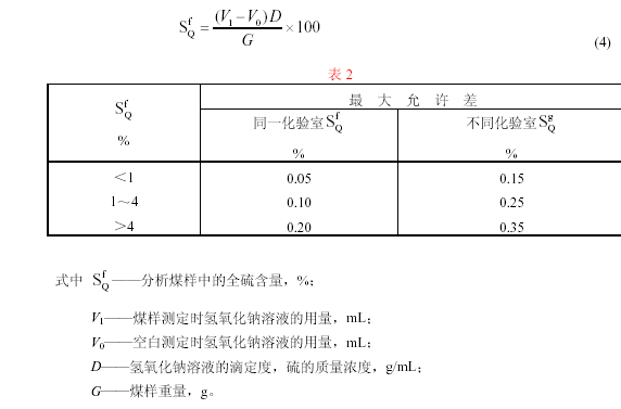 3.6.1 全硫測定的最大允許差不得超過(guò)表2 規定。
