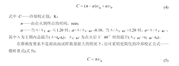 這樣,在測定步驟上就可刪去主期內讀溫這一步,計算也將變得更簡(jiǎn)單。但該公式不能用于發(fā)熱量計價(jià)和仲裁分析中。