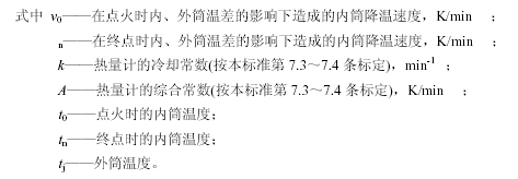 首先根據點(diǎn)火時(shí)和終點(diǎn)時(shí)的內外筒溫差(t0-tj)和(tn-tj)從v-(t-tj)關(guān)系曲線(xiàn)(按本標準7.1~7.4 條標定)中查出相應的v0 和vn?;蚋鶕A先標定出的式(2)、(3)計算出v0 和vn: