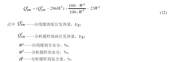 10.1 工業(yè)上多依應用煤的低位發(fā)熱量進(jìn)行計算和設計。低位發(fā)熱量的計算方法如式(12):