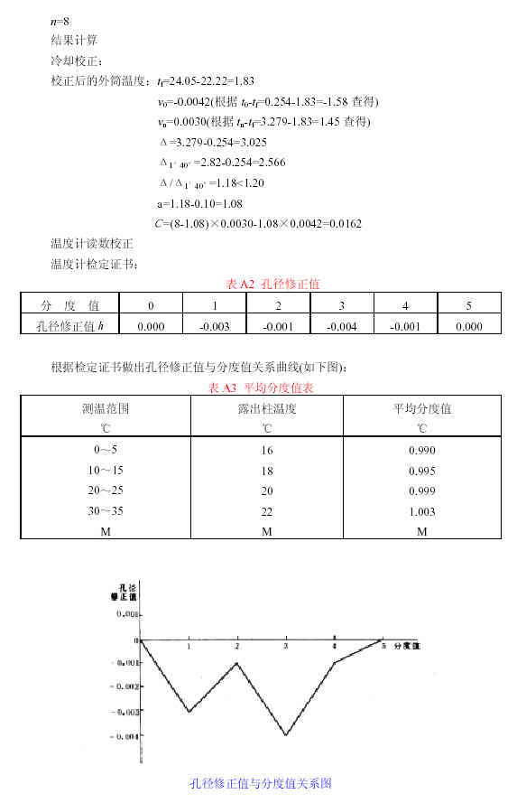 注:當內筒使用貝克曼溫度計,外筒使用普通溫度計時(shí),應從實(shí)測的外筒溫度(見(jiàn)本標準第5.1.5 款)中減掉貝克曼溫度計的基點(diǎn)溫度后再當做外筒溫度tj,用來(lái)計算內、外筒溫差(t0-tj)和(tn-tj)。如內、外筒都使用貝克曼溫度計,則應對實(shí)測的外筒溫度校正內、外筒溫度計基點(diǎn)溫度之差,以便求得內、外筒的真正溫差。